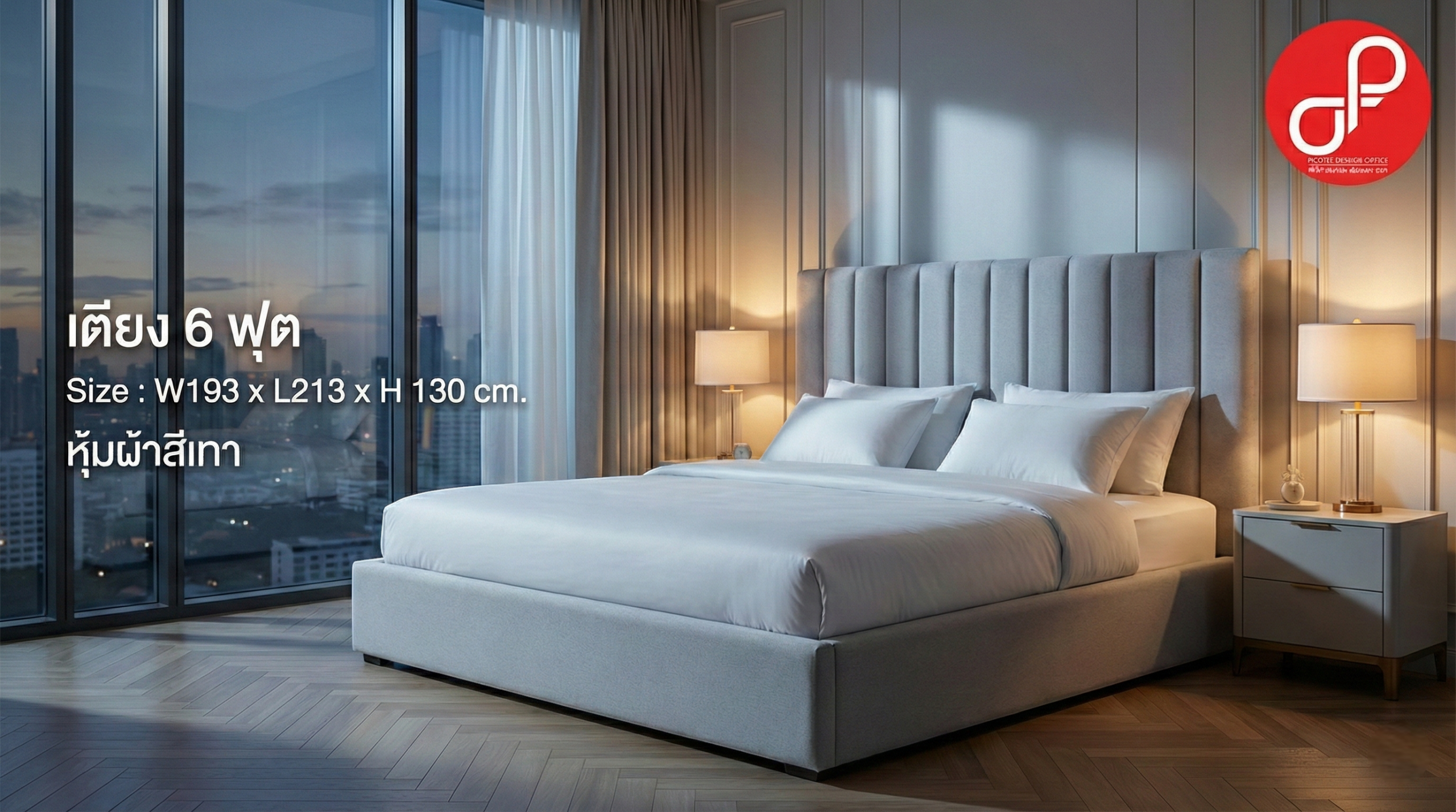 เตียง 6 ฟุต (หุ้มผ้าสีเทา)