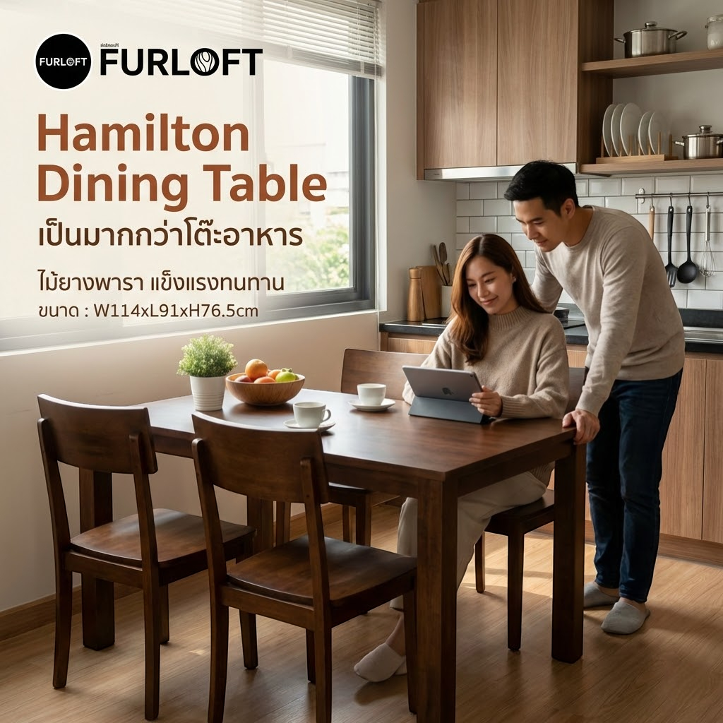 ชุดโต๊ะอาหาร Haminton เป็นชุดโต๊ะรับประทานอาหารไม้แท้ที่เน้นความเรียบหรูและทนทาน